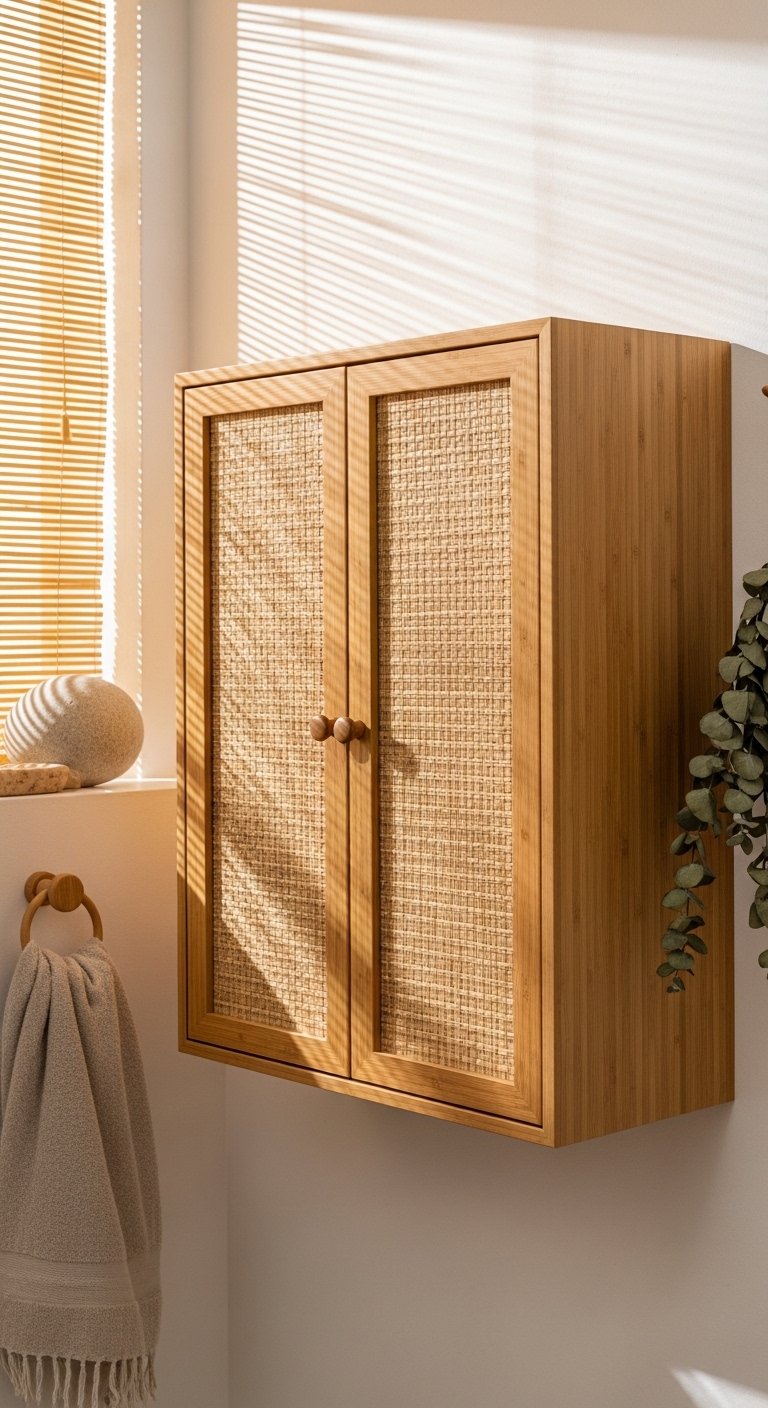Bamboo is naturally resistant to moisture, which makes it an excellent material choice for bathroom storage. A bamboo wall cabinet brings an organic, spa-like quality to the space and pairs beautifully with neutral and earth-tone bathrooms.