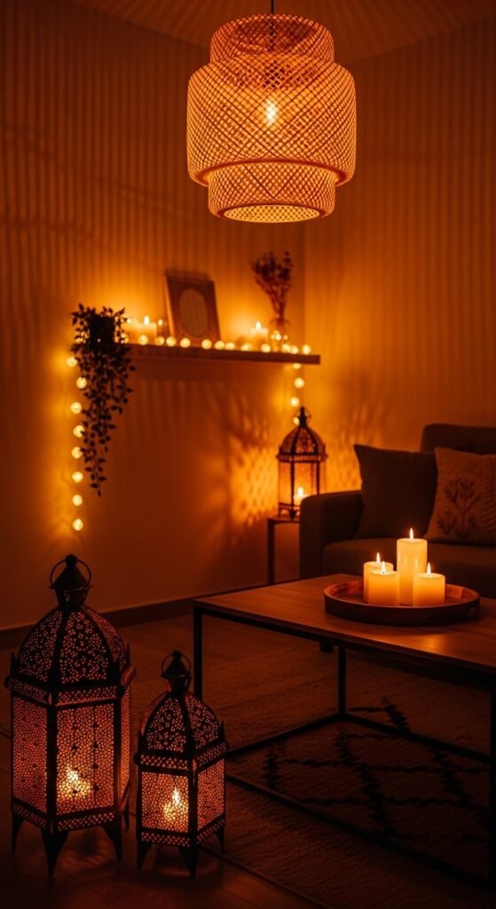 Harsh overhead lighting and boho style are mortal enemies. Boho rooms live and die by warm, layered, ambient light the kind that makes everything glow softly and feels like a perpetual golden hour inside your home.