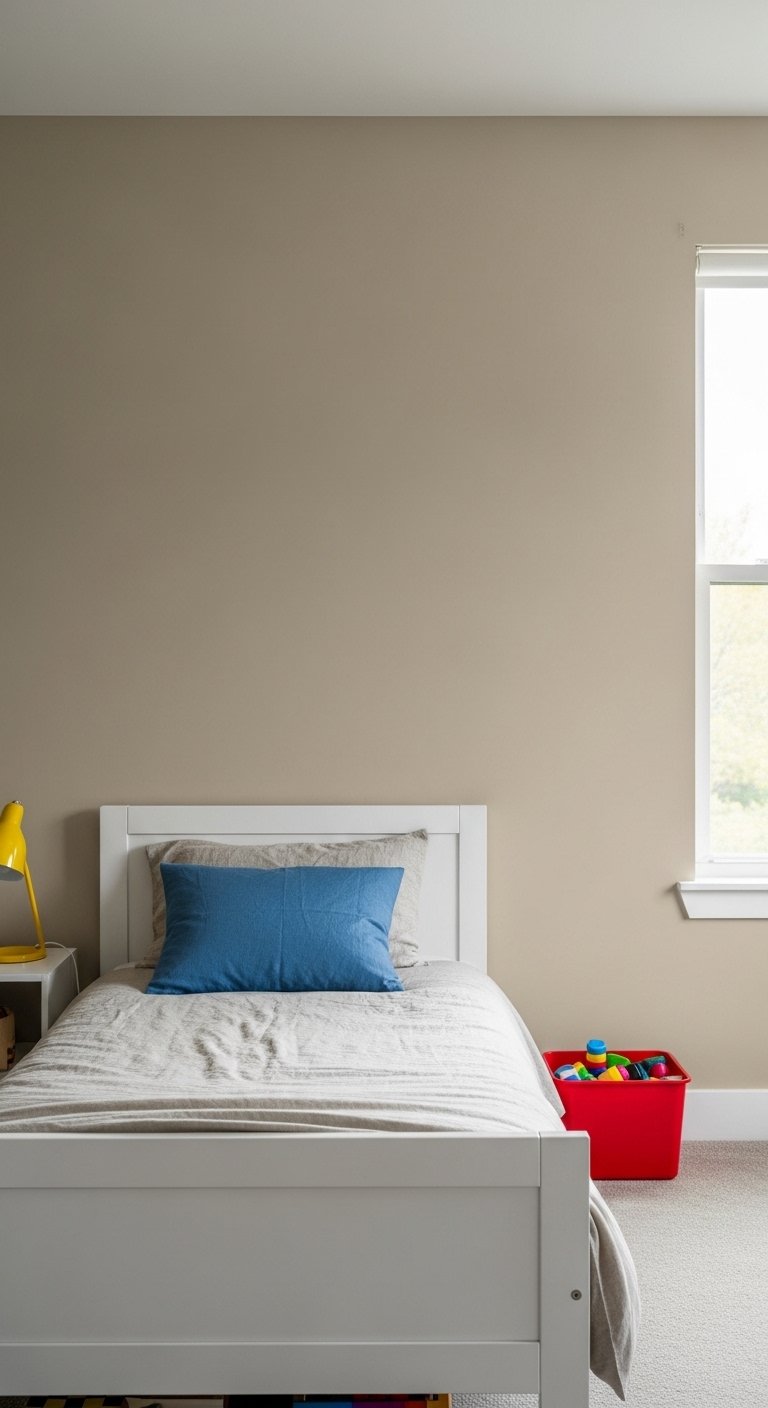 Themed rooms tied to a specific character or color scheme have a short lifespan. A neutral base means you update accessories, not walls, when your child moves from dinosaurs to soccer to whatever comes next.